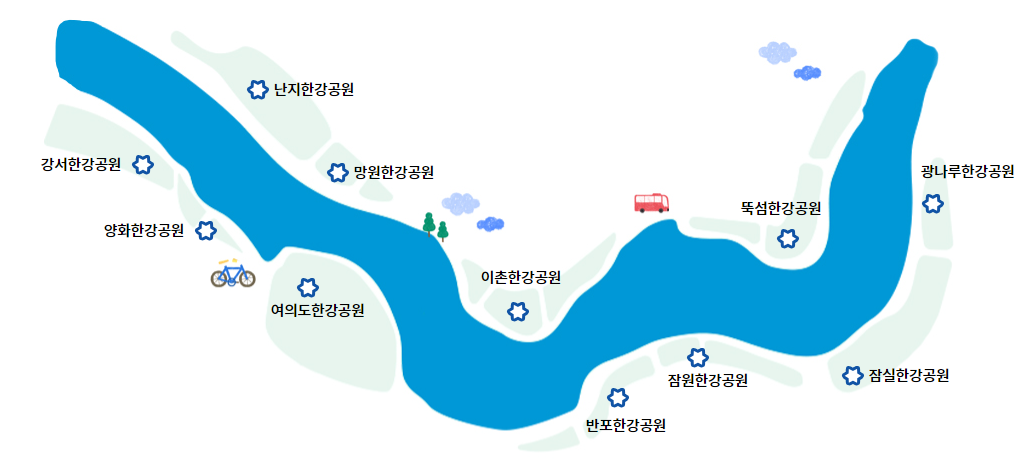 여러분이 해안가에서 휴식을 취하든, 야외 모험을 즐기든, 독창적인 문화에 몰입하든, 한강 공원은 모두를 위한 상품을 가지고 있습니다.