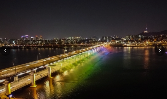 반포한강공원 야간조명과 무지개분수