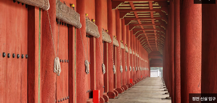 정전은 각각 조선왕조 역대 왕과 왕비의 신주를 모시는곳으로 총 19개실에 49위의 신주가 봉인되어있습니다.